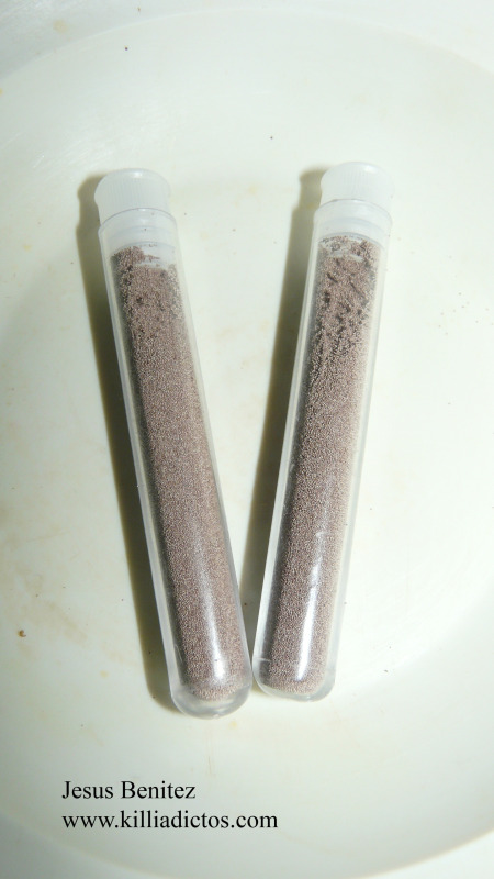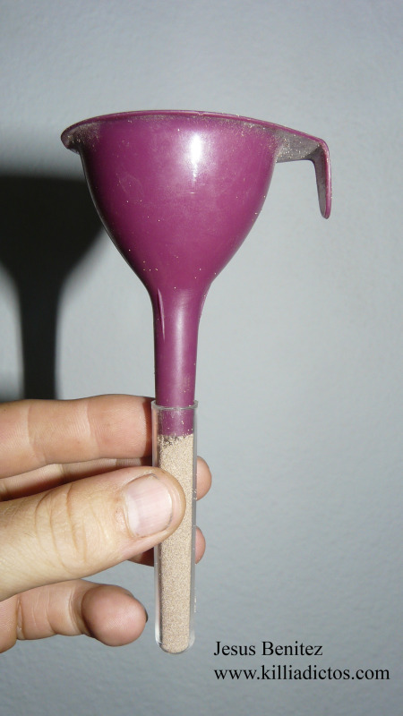 Yo como tengo cogida la medida con estos tubos de ensayo de 5 cl cada uno pues los lleno para asegurarme de hacerlo con la cantidad idónea.