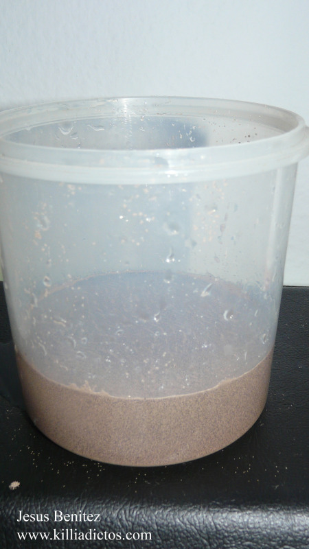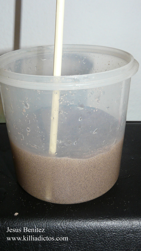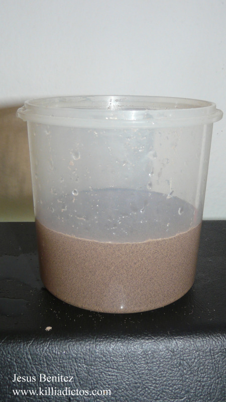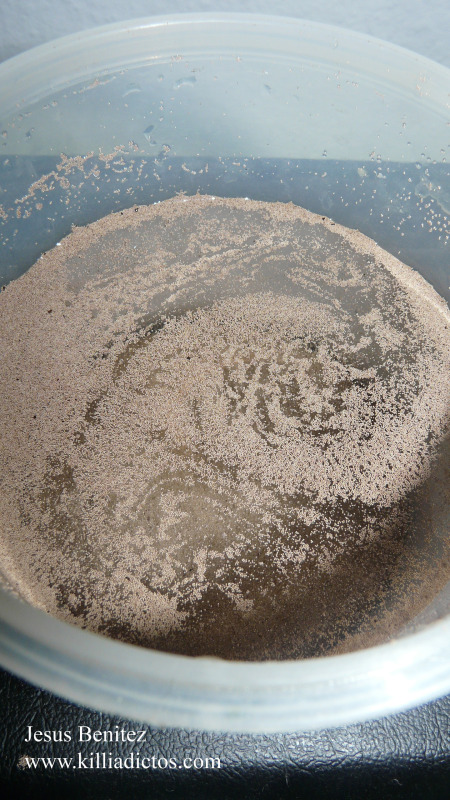 Llenar el recipiente como para que cuando sumerjamos los quistes estos terminen sumergidos.