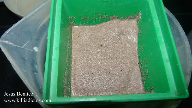 Luego solo tendrás que sacar el tamiz de la salmuera y con una cucharilla coges lo que vas a utilizar y lo colocas para eclosionar como normalmente la eclosionamos.