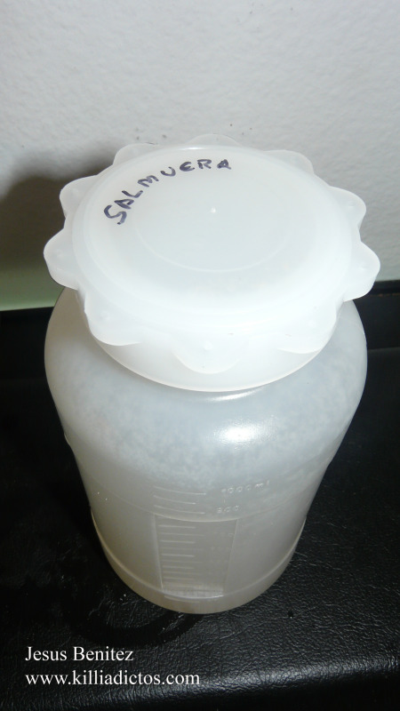 Ahora preparamos Salmuera (360 gm por litro de agua).