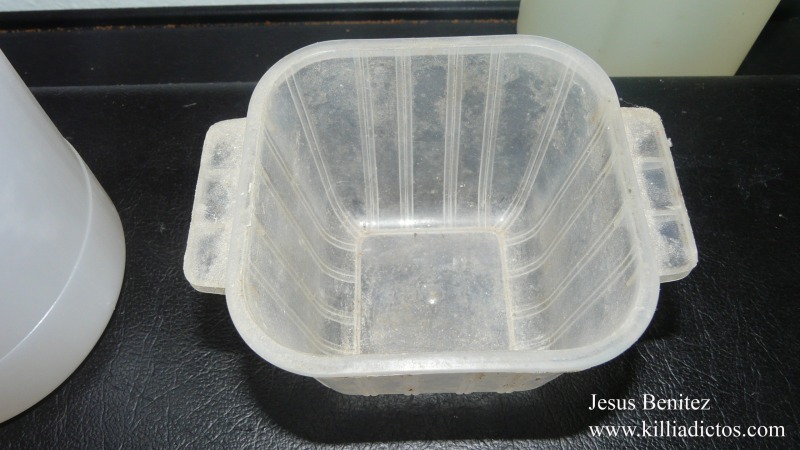 Verter la Lejía en el recipiente donde tenemos el agua y los quistes hidratados.
