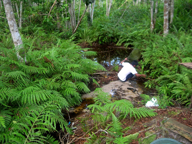 El primer día nos fuimos por la carretera Nauta a mas o menos 3 horas de camino en carro desde el centro de Iquitos, nos estacionamos, nos pusimos las maletas al hombro, redes en mano y a caminar, la sorpresa fue que a los 5 minutos encontramos los primeros rivulus y el chino me dijo, estos hay que dejarlos, todavía no hay que pescarlos, a la salida, mejor así, que de ahí no se van, a si que seguimos caminando, pero ya se imaginaran la sonrisa de oreja a oreja que tenia jejejeje, que se me borro bien rápido cuando vi el camino que teníamos que sortear.