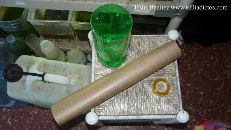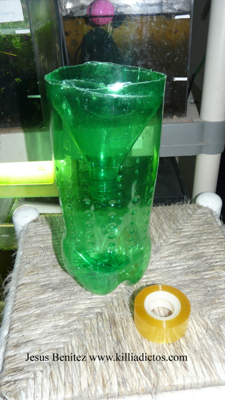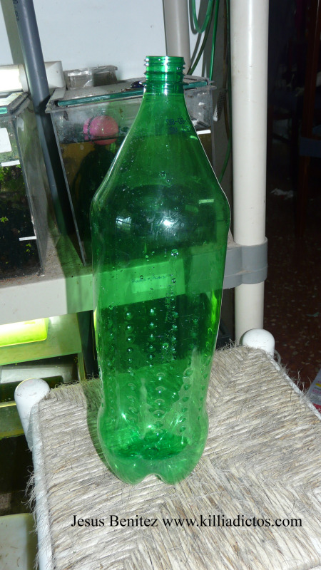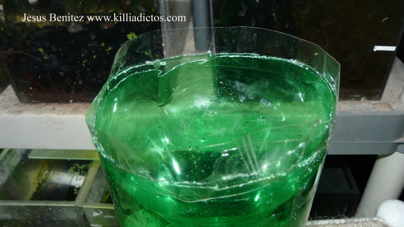 Y en principio ya esta el artilugio terminado, ahora solo falta agregarle agua de acuario de la de los cambios de agua y agregarle algo de materia orgánica.