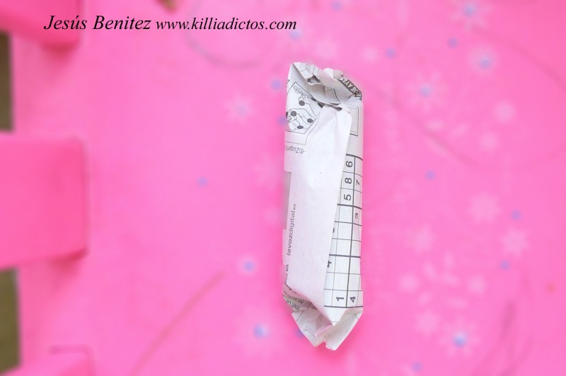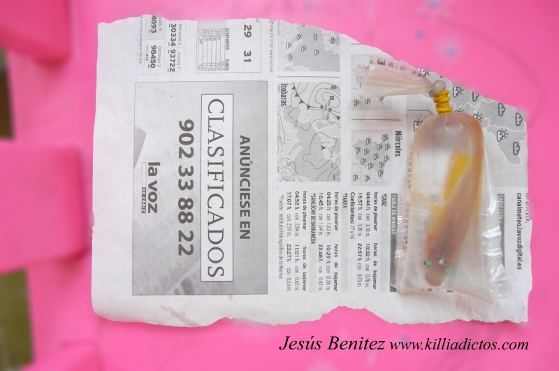 Ahora cogemos un trozo de papel de diario debido a que uno de los requisitos de las bolsas pulmón es que entre ellas no se pueden tocar, en este caso daria igual por ser solo un pez lo que vamos a enviar pero además la oscuridad que le ba a dar el papel lo mantendra dormido y tranquilo el mayor tiempo posible por si la caja no se serrara bien.