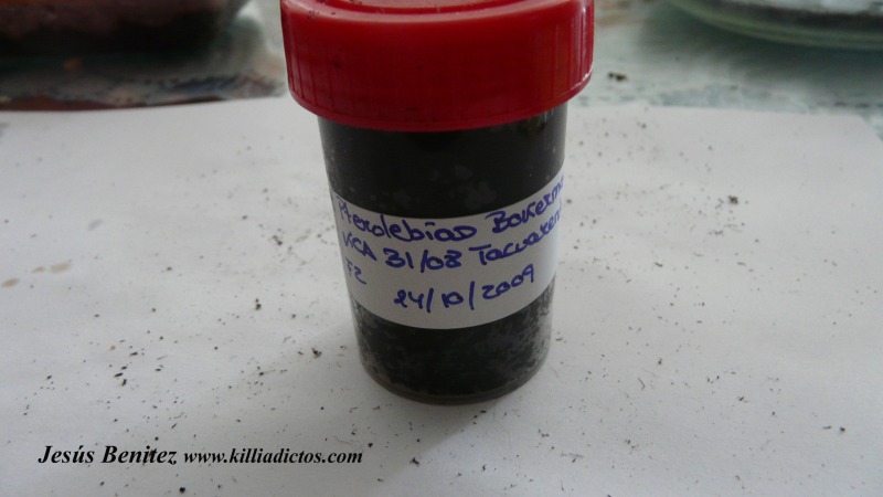 Y pasamos a etiquetar el frasco con el nombre de la especie y fecha de recogida. Podéis ver que el año lo e colocado completo en vez de colocar "09" coloco "2009" de esta forma no tendré confusión posible.