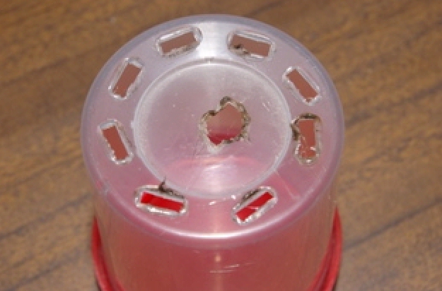 Con el soldador caliente comenzamos a hacer agujeros, primero el central y luego ...