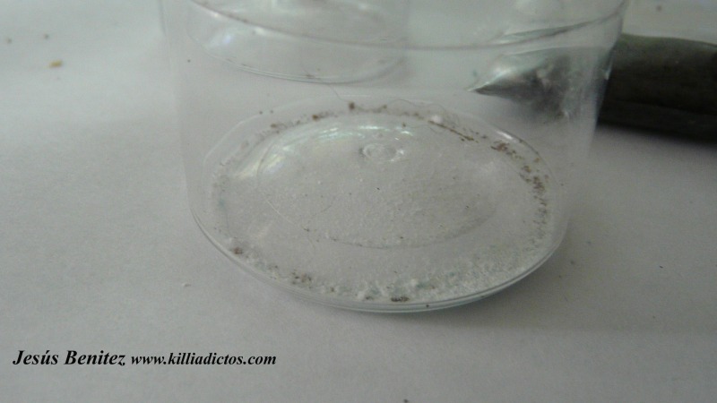 Lo primero tomamos el cuarto de la pastilla de oxigeno y la molemos en el mortero quedando esta lo mas en polvo que podamos.