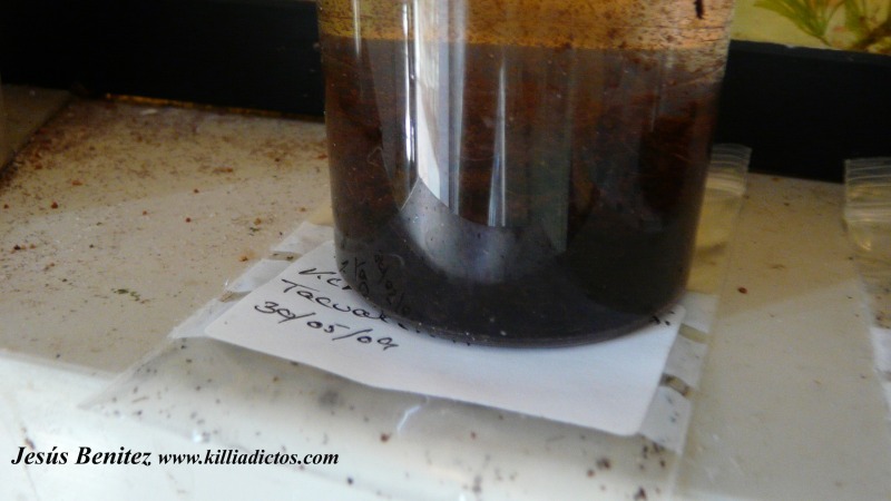En mi caso y para no tener dudas coloco la bolsita donde se encuentra la turba con los huevos bajo él baso donde los coloco para poder identificarlos.