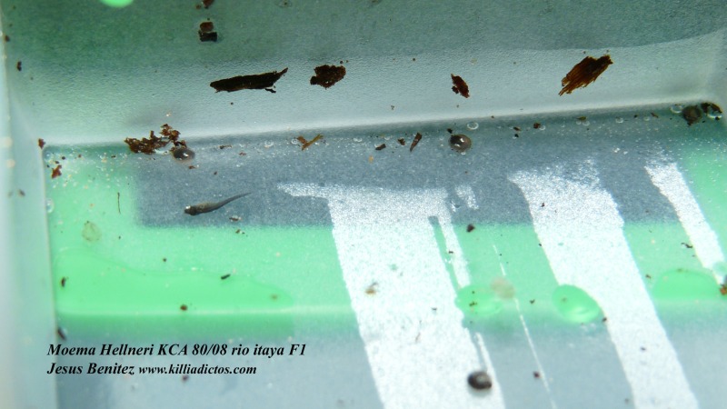 Hoy 13/09/2008 ha nacido otro alevín tras un cambio casi radical del total del agua que tenia el recipiente (donde mantengo los huevos que están listos para eclosionar en agua) por agua de acuario (PH 6,3 y GH 4-7) recién sacada del frigorífico.