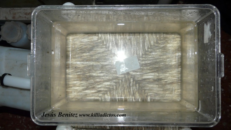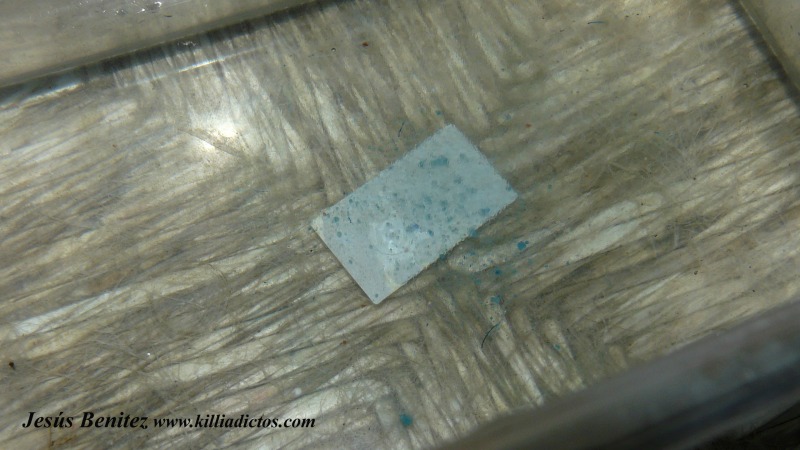 Aqui podeis ver en el fondo del acuario el azul de la pastilla.