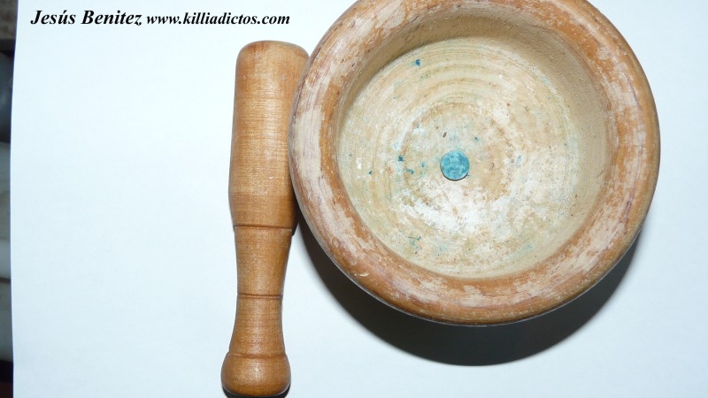 Una vez tenemos la pastilla solo necesitamos un mortero donde podamos machacar la pastilla. Os recomiendo que compréis un mortero para vosotros ya que para moler las pastillas azules, las de oxigeno, spirulina, etc.., os vendrá de perlas.